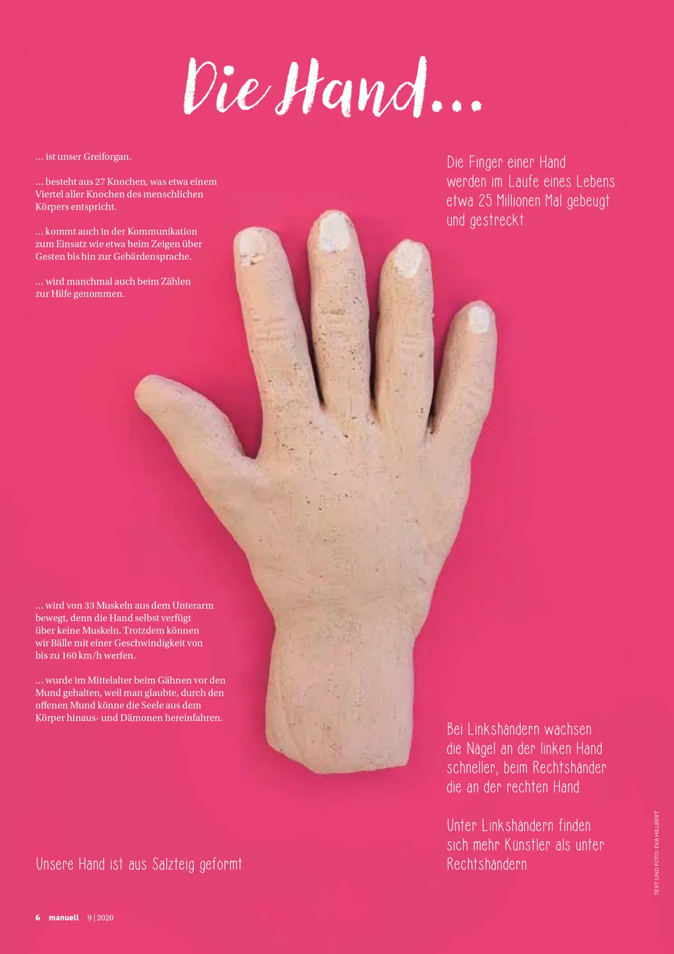 Geformt. In dieser Ausgabe nimmt unsere menschliche Hand als kleines Wunder der Natur einen formgebenden Platz ein.