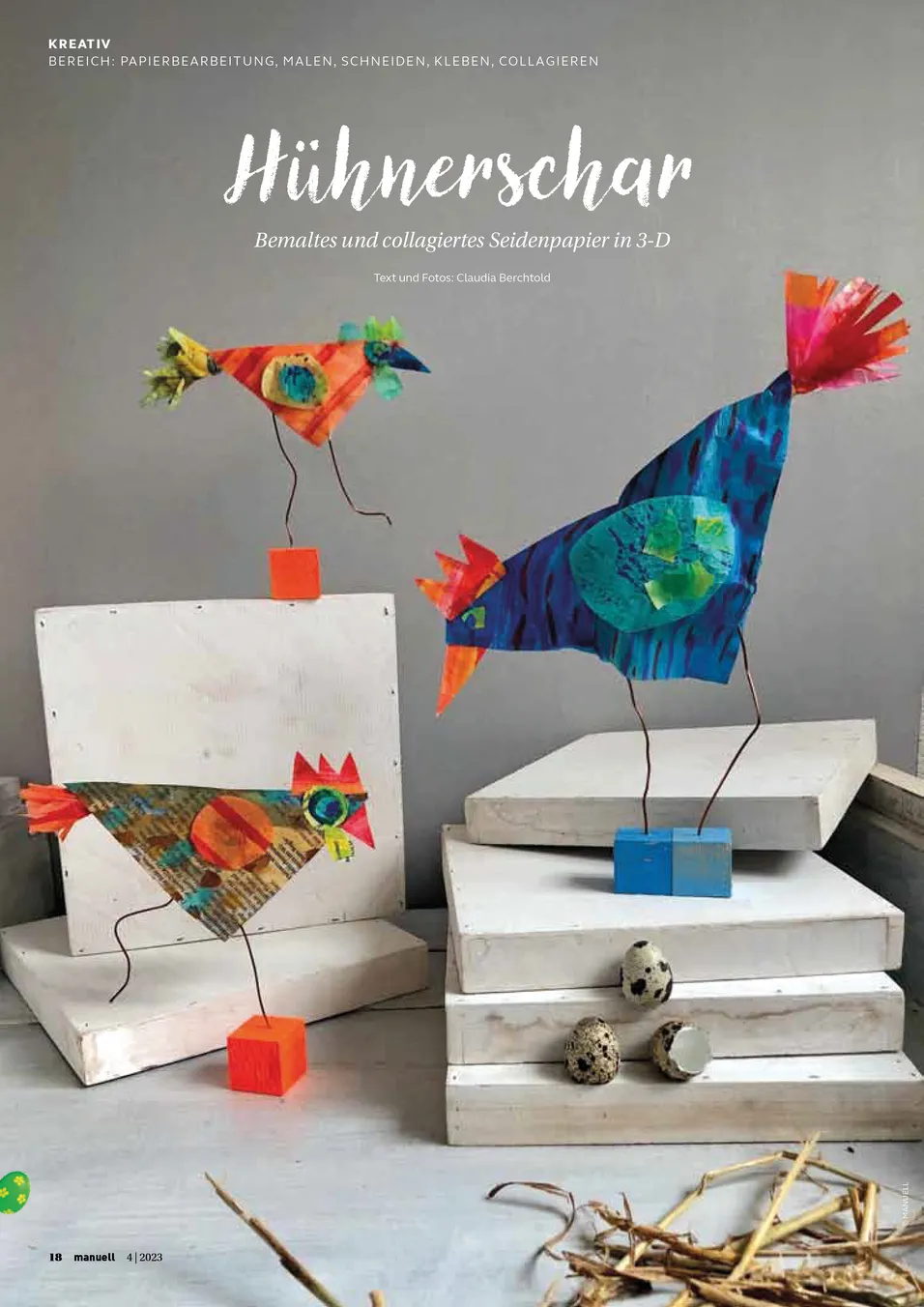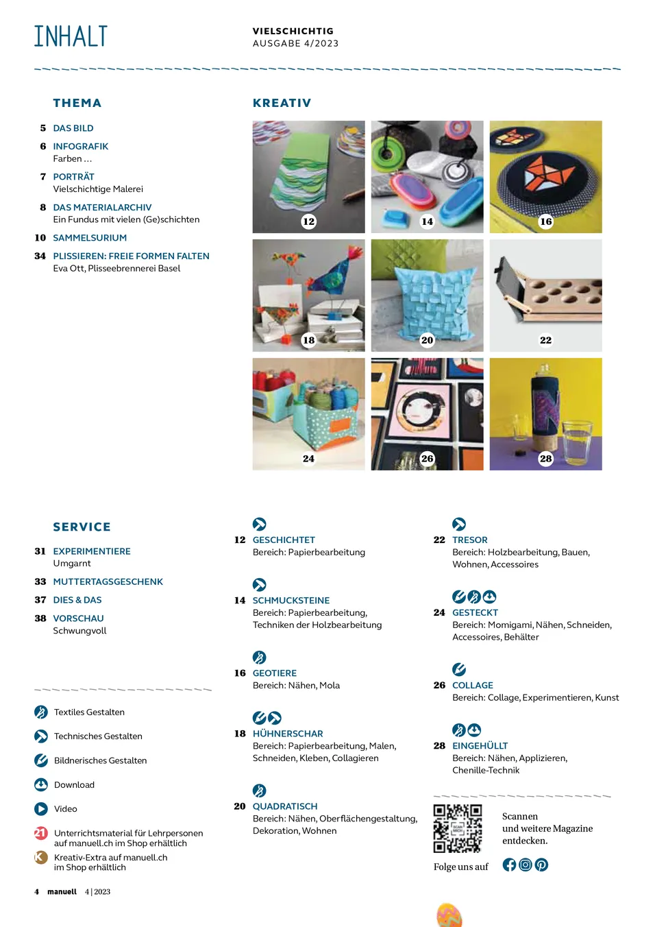 Alles eine Frage der Perspektive. So abwechslungsreich die Materialien, so vielschichtig sind die Beiträge in dieser Ausgabe. Aus Papier werden Schmucksteine, Behälter oder Hühner gezaubert. Stoff wird geschichtet genäht, geschnitten oder für Dekorations-Zwecke eingesetzt und aus Holz entsteht ein wunderbarer kleiner Tresor für winzige Kostbarkeiten. Lasst euch von den Möglichkeiten zu weiteren Ideen inspirieren.