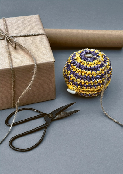 Abwickeln wie am Schnürchen! Mit diesem Häkelprojekt bist du das lästige Schnur-Durcheinander los. Ob aufgehängt oder stehend – dieser Schnurspender hilft dir dabei, Schnüre und Bänder in Zaum zu halten und deine Pakete ruckzuck zusammenzuschnüren.