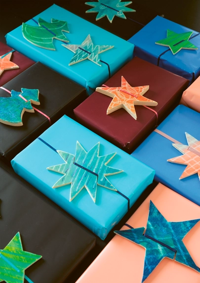 Die Vorfreude auf Weihnachten beginnt bekanntlich schon beim Geschenke einpacken! Verschönere dein Paket mit einem raffinierten Anhänger aus Sperrholz, der mit der Wachsmaltechnik verziert wird. Weihnachtliche Formen aussägen, einfärben und ein passendes Geschenkband auffädeln. Schon ist dein bezaubernder Anhänger fertig. Viel Spass beim Freude schenken.