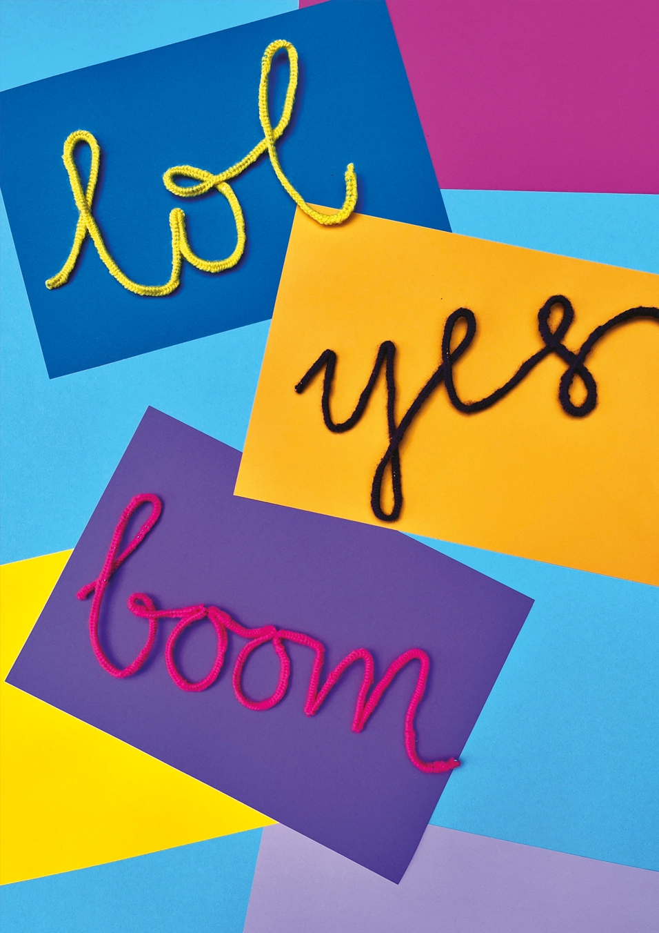 Stricken ohne Stricknadeln. Schlage die Maschen direkt auf einen Aluminiumdraht an und kreiere daraus spielerisch gebogene Schriftzüge. Der flexible und zugleich stabile Draht dient als perfekte Grundlage, angeschlagene Maschen auf innovative Art und Weise umzusetzen.