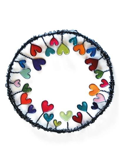 Kleiner Kranz aus Draht mit vielen bunten Herzen inkl. Schritt-für-Schritt-Bildanleitung.