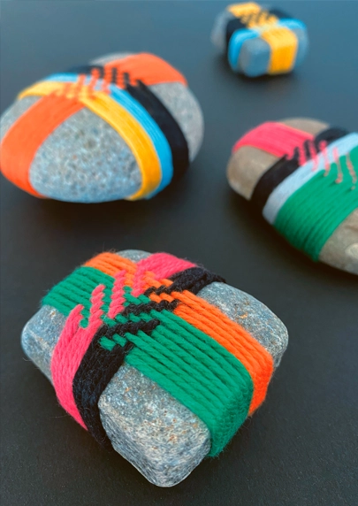 Wir schärfen das Auge für die Schönheit und Besonderheit von Steinen und schmücken sie mit einer gewobenen Hülle. Ein persönliches Geschenk, das Freude bereitet.