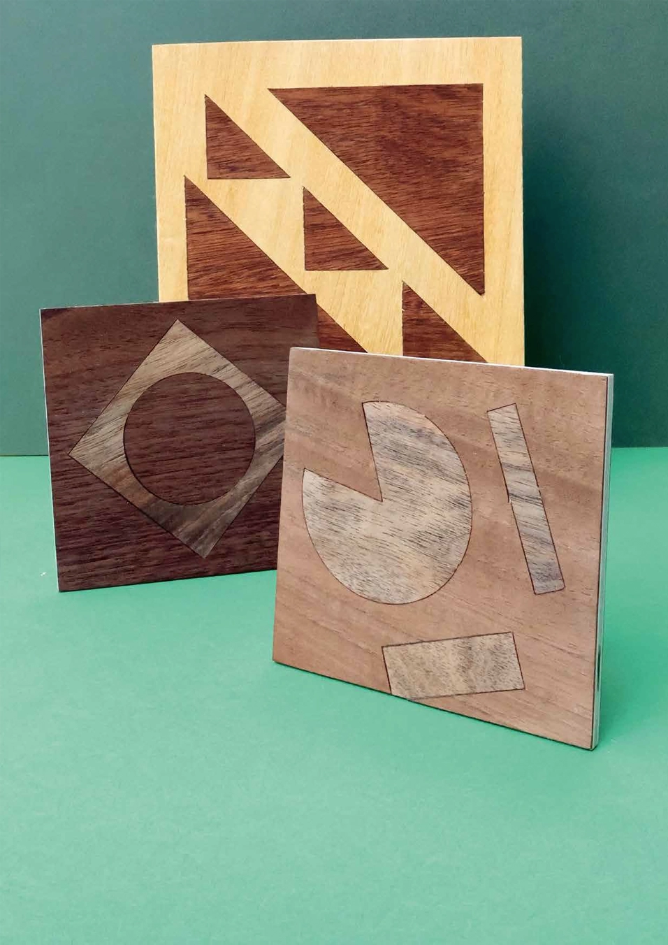 Schneideplotter trifft auf Furnier. Sei kreativ und lass dich auf dieses Experiment ein. Kombiniere unterschiedliche Hölzer und Formen und kreiere daraus witzige Untersetzer oder ähnliches.