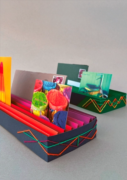 Schluss mit Unordnung auf dem Schreibtisch! Dieser Organizer ist die perfekte Lösung. Originell gefaltet und funktional bestickt, wird er erst noch zum Hingucker.