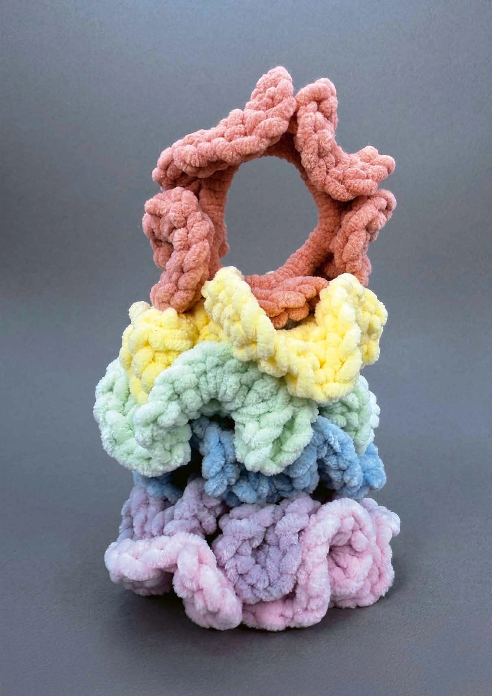 Wir lieben sie – die praktischen bunten Haargummis, die unsere Haare im Nu bändigen. Umhäkelt mit poppigem Chenillegarn werden die «Scrunchies» zum absoluten Hingucker und verleihen deinem Dutt das «gewisse Etwas». Auch am Handgelenk ziehen sie die Blicke auf sich. Schnapp dir ein Haargummi, Chenillegarn und eine Häkelnadel und lass farbenfrohe «Scrunchies» von deiner Nadel purzeln.