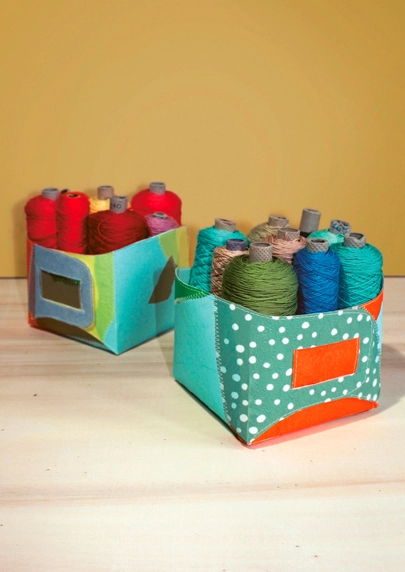Steck mich zusammen! Die Herstellung dieses witzigen Behälters beinhaltet die Momogami-Technik, der Kunst des geknüllten Papiers. Der entstandene Papierstoff lässt sich wie Stoff verarbeiten. Im Nu sind diese praktischen Körbchen fertiggestellt und können nach Belieben eingesetzt werden.