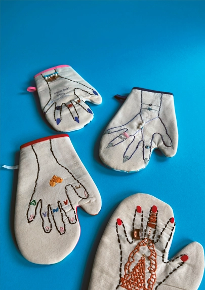 Fehlt dir noch das passende Muttertagsgeschenk oder ein schmucker Blickfang in der Küche? Dann ist dieser Topfhandschuh genau die richtige Lösung für dich. Er sieht nicht nur stylish aus, sondern schützt deine Hand gleichzeitig auch vor heissem Kochgeschirr. Die Fertigung ist einfach und die Möglichkeiten für das gestalterische Ausschmücken sind vielfältig. Sorgfältig bestickt, verziert und mit Schmuckperlen ergänzt, wird aus deinem Entwurf ein einzigartiges Designprodukt.