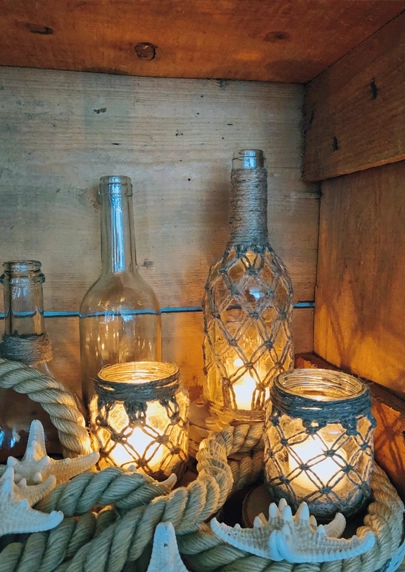 Alte Flaschen und Gläser mit Schnur aufpeppen.