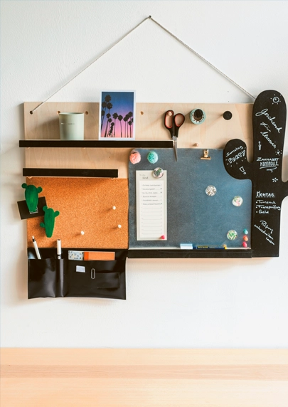 Behalte den Überblick! Dieses individuell gestaltbare Memoboard kann den eigenen Wünschen angepasst werden. Die Kreide- und Magnettafel, die Pinnwand und eine geräumige Dokumententasche helfen dir Ordnung in dein Leben zu bringen. Viel Erfolg bei der Umsetzung.