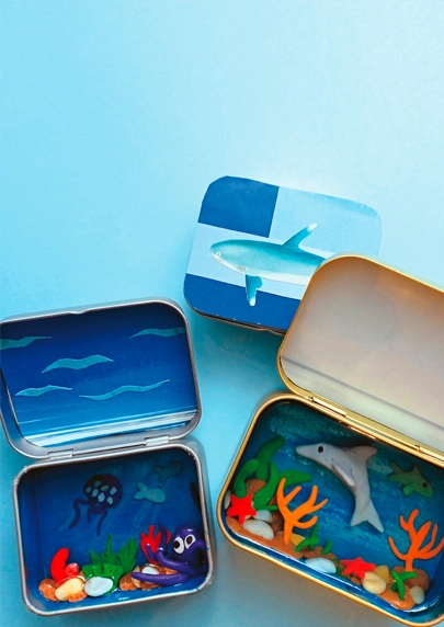 Eine Miniwelt gefällig? In diesem Projekt werden alte Bonbondosen zu bunten Mini-Aquarien. Tauche mit uns ein in den tiefen Ozean und gestalte deine eigene Fantasie-Unterwasserwelt.