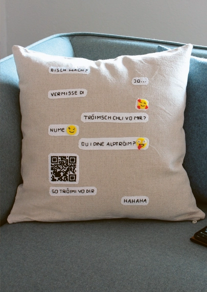 Schöne Nachrichten oder liebe Worte festhalten und verewigen, anstatt sie im Nirvana der Nachrichtenwolken verschwinden zu lassen? Wir zeigen dir, wie du einfach aber wirkungsvoll einen Chatverlauf sticken und so die gewählten Worte z.B. auf einem Kissen festhalten kannst. Die Langsamkeit des Stickens steht hier im Gegensatz zur Geschwindigkeit des Chattens und ermöglicht dir diesbezüglich eine neue Bewusstseinsebene. Süsse Träume inklusive.