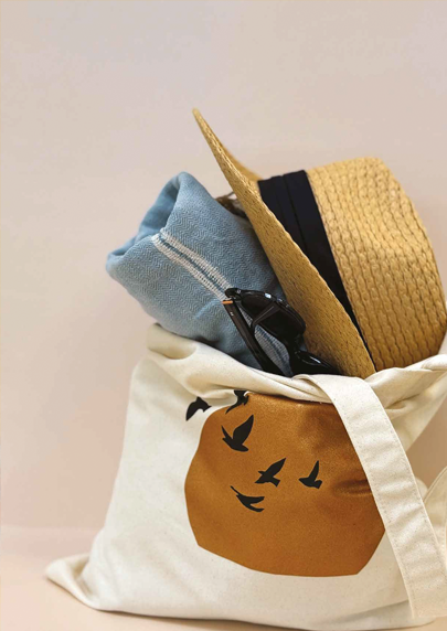 Geniesst du nach der Sommerhitze die angenehmen Temperaturen im Freien? Bedrucke für deine Ausflüge eine Stofftasche mit einem Motiv, das den Sommer noch ein wenig nachklingen lässt. Egal, ob Badesachen oder Picnic, in der selbst gestalteten Tasche hast du alles mit dabei. Dieses Siebdruckverfahren benötigt keine Chemikalien und kann mit einer Schablone aus alten Sichtmäppchen umgesetzt werden.