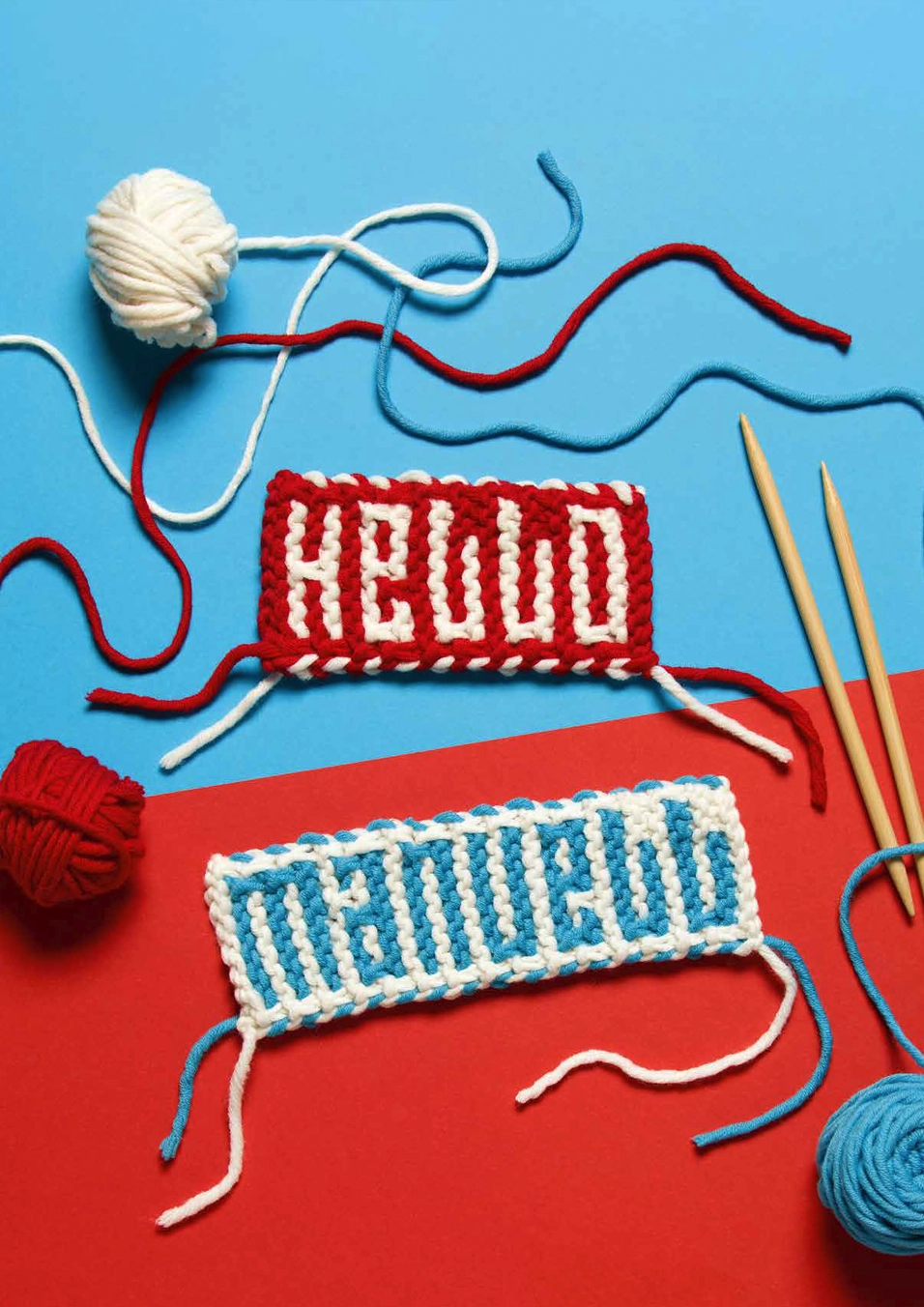 Strickend schreiben? Ja, das geht tatsächlich! Zum Texten brauchst du nicht immer ein Smartphone. Mit Stricknadeln, Wolle und der Schrift «Knit Hello» kannst du deinen Namen und dein Lieblingswort auch stricken. Mit rechten Maschen und Hebemaschen entsteht kein nerviges Fadengewirr.