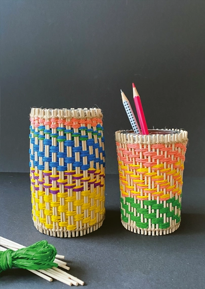 Kennst du die klassischen PeddigrohrKörbe mit ihren eingearbeiteten Holzböden? Unsere aufgepeppte Neuinterpretation bringt Farbe ins Spiel! Mit selbst gedrehtem Papiergarn kannst du die Staken kreativ umweben und eine farbige Hülle für ein Glas gestalten. Lass deiner Kreativität freien Lauf!