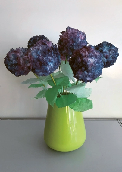 Aus Stoffgazen Blumen gestalten? Mit der Technik der Pompon-Herstellung und den passenden Farben lassen sich den echten Exemplaren zum Verwechseln ähnliche Hortensien aus textilem Material gestalten. Dabei sind diese Modelle (fast) unvergänglich und verwandeln jeden schönen Tisch in ein Schmuckstück, egal in welcher Farbe. Am besten, du stellst gleich einen ganzen Strauss her.