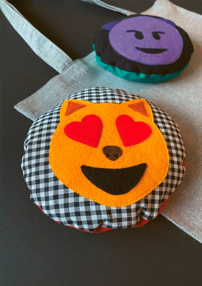 Kennst du die faltbaren Taschen zum Mitnehmen? Diese aus Baumwollstoff genähte Variante ist nicht nur praktisch, sondern auch ein echter Hingucker. Hinter der aufgesetzten Verstaufläche zum Umstülpen verbirgt sich ein fröhliches Emoji. Welches «Smiley» darf es für dich sein?
