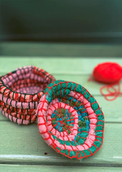Lust auf ein weiteres Upcycling-Projekt? Diese aus Plastikverpackungen und Stoffresten vernähten Körbchen sind praktische und witzige Blickfänger. Nichts wie ran an die Nadel.