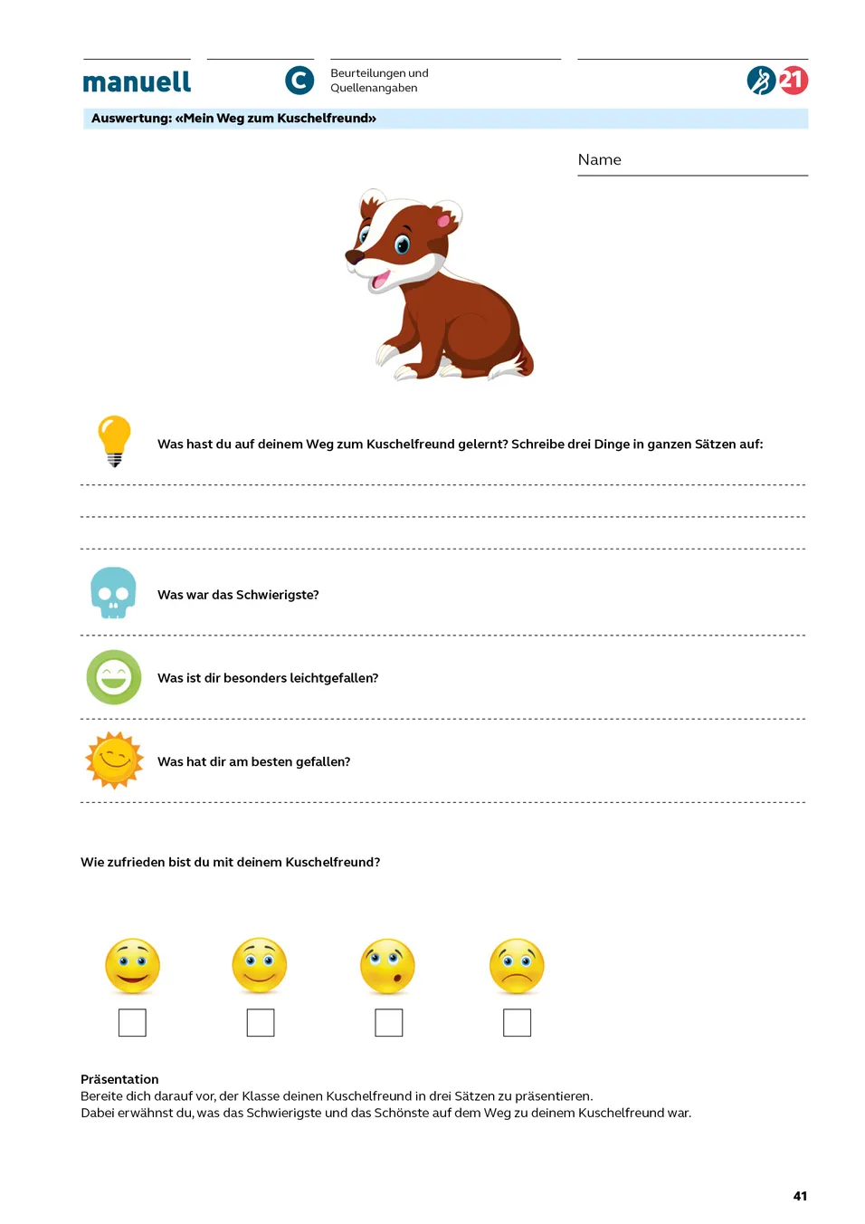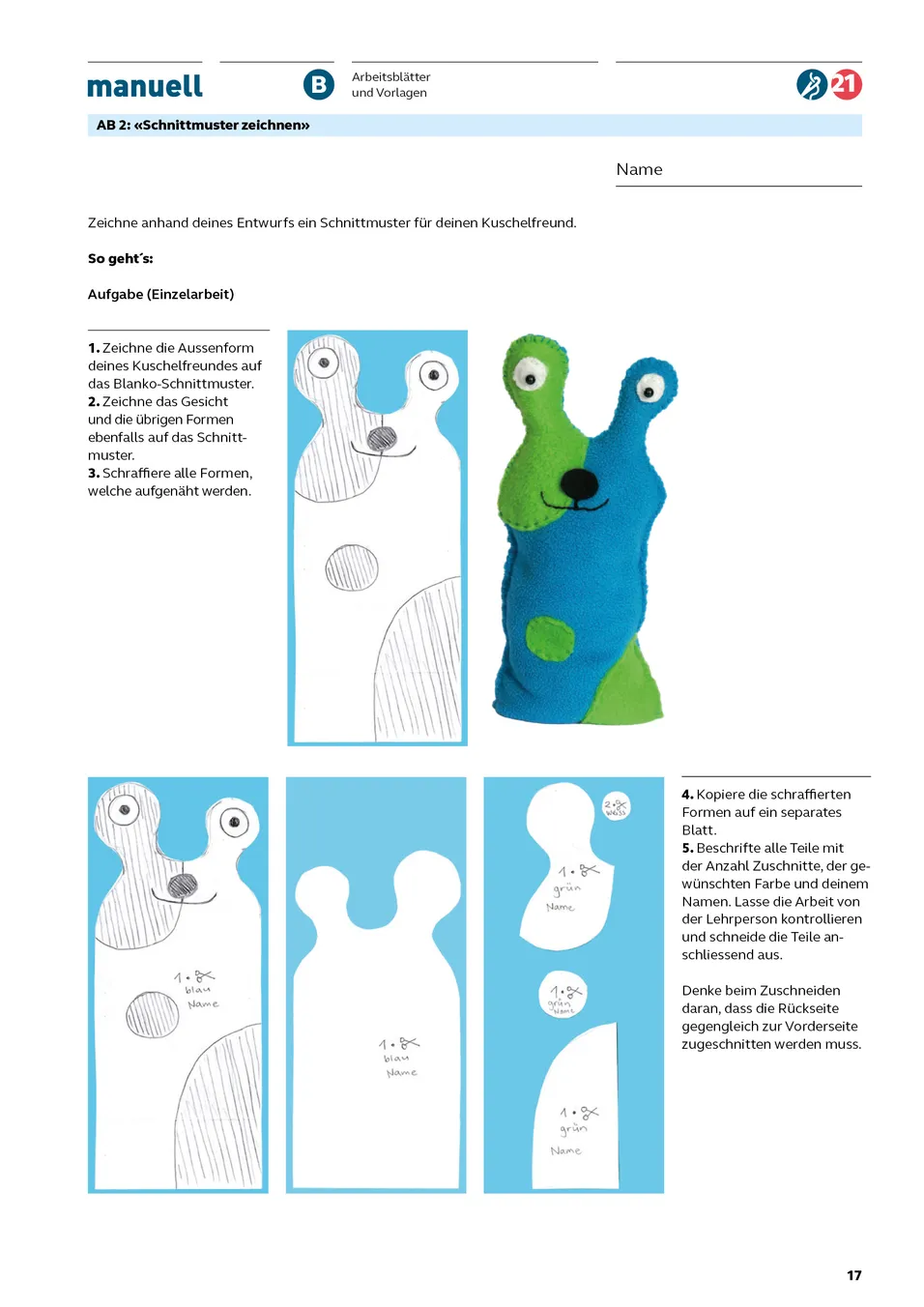 Das UM «Kuschelfreunde» eignet sich für den Zyklus 1/2. Es bietet auf 56 Seiten eine umfassende Planung für 10-14 Doppellektionen und beinhaltet alle dazu notwendigen Checklisten (inklusive Materialchecklisten), Anleitungen, Bilder, Schnittmuster, Links sowie Arbeitsblätter. Lehrpersonen profitieren von der hohen Qualität eines bereits erprobten Unterrichtskonzepts und sparen Zeit bei der Ideenfindung und Planung ihres abwechslungsreichen und kompetenzorientierten Unterrichts.