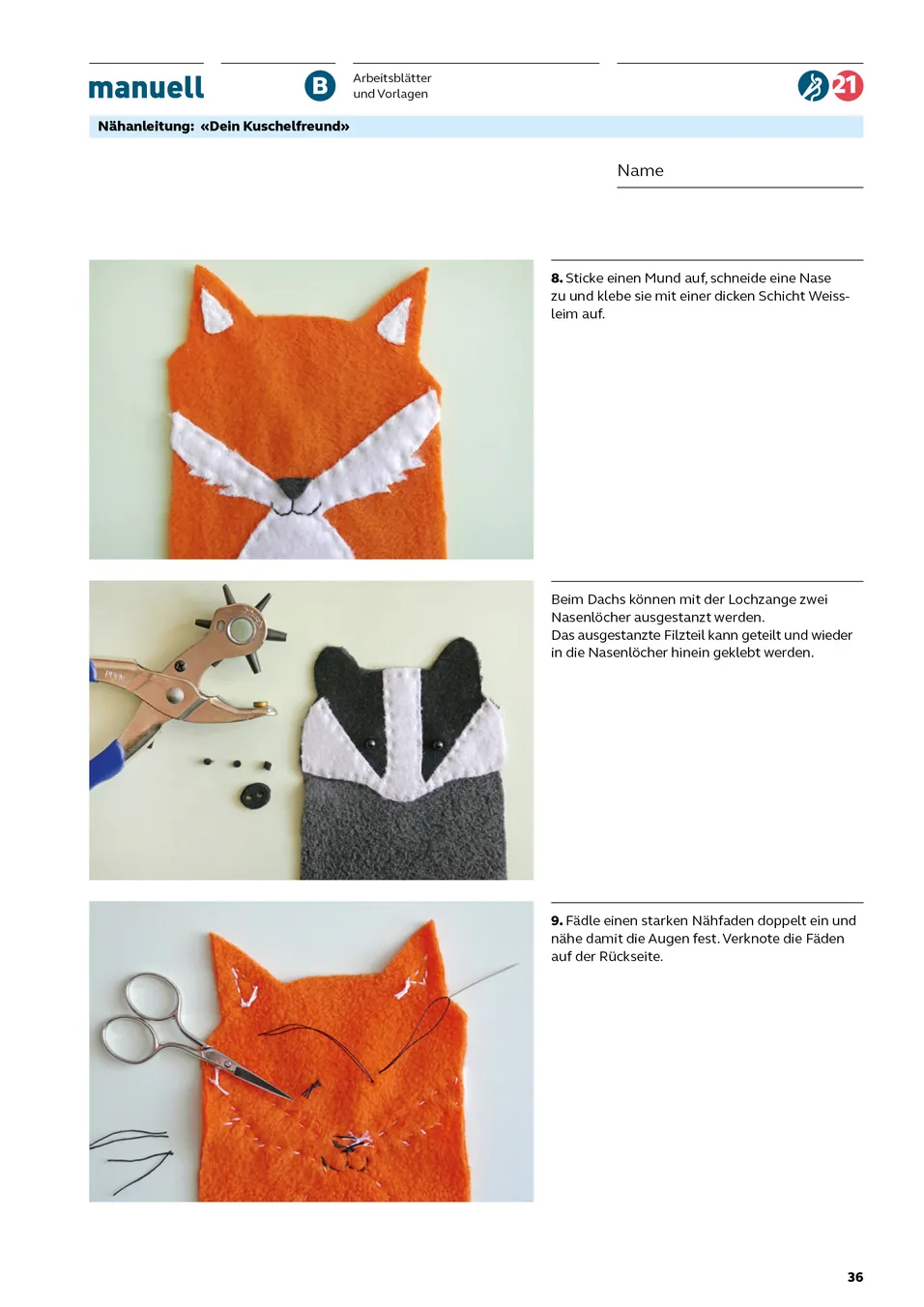 Die Schülerinnen und Schüler werden in diesem UM angeleitet einen wärmenden Kuschelfreund für sich zu entwerfen und anzufertigen. Auf spielerische Art und Weise werden Nähkenntnisse (z.B. Stiche, Verknoten etc.) vermittelt, Füllmaterialien erprobt sowie weitere Elemente zur Erstellung des Endprodukts aufgezeigt. Den kuscheligen Freund mit dem Wärmekissen im Bauch nähen die Schülerinnen und Schüler selbständig aus Fleece-Stoff und verzieren ihn mit einem Accessoire in Form eines geflochtenen Schals. Ein perfekter Begleiter für die kalte Jahreszeit. Das UM bietet nebst diversen Arbeitsblättern zur Auflockerung und für Zwischendurch ein selbst entworfenes «Leiterlispiel» sowie einen Steckbrief an. Schau rein, es lohnt sich.